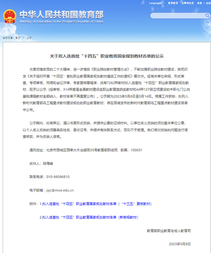 喜报:学院教材入选“十四五”职业教育国家规划教材
