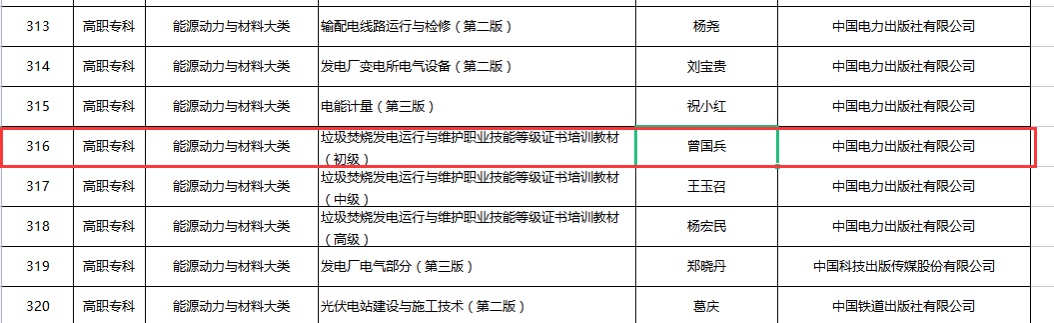 5月8日,教育部职业教育与成人教育司发布《关于拟入选首批“十四五”职业教育国家规划教材名单的公示》,学院曾国兵老师主编的《垃圾焚烧发电运行与维护职业技能等级证书培训教材(初级)》入选“十四五”职业教育国家规划教材。