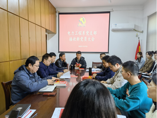 为加强组织建设,积极吸收大学生中新鲜血液加入党组织,2022年11月15日下午,电力工程系党支部召开接收新党员大会。会议由支部书记李文胜主持,支部全体党员和预备接收的新党员参加会议。