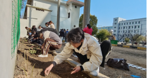 在第45个植树节到来之日,电力工程系积极响应,22发电厂及电力系统专业全体学生在校园内的角落开展了劳动教育课的实践活动,建立了植物小基地。集体种植前期,在劳动教育授课老师和劳动委员的带领下,同学们通过废物利用的方式积攒种植所需材料,大家在课余时间捡拾路途上烧过的煤球以及校园内外松树下的松针等物品带回预开荒土地上积攒留用,用以土壤的填充与疏松。三月的校园阳光明媚、春意盎然,各位同学带上手套,拿起铁锹,认真地清理杂草、疏松土壤,再拌入煤灰和松针,小心翼翼地将他们情有独钟的多肉亲手种植在这片小基地里,满心满眼的欣喜与期待。多肉的成长和青年人的成长一样,需要经年累月的过程才能不断地茂盛自己,需要扛得住风雨才能继续迎接阳光展出最美的色彩,多肉植物的每一个叶片都能继续成长为一颗新的植物。同学们还将土地分为各类功能区,地表种下的植物多为幼植,墙面上学生们动手固定了供攀缘的蔷薇和风车茉莉攀爬的网格,地面上也开发了叶片种植区域,可以观察一棵新生植物的成长,劳动教育课的意义不仅仅在于劳动本身,更重要的是收获和体会,相信在数年后,这片劳动教育课小基地会在学生们的养护下成为校园内的一块靓丽的风景,吸引其他同学驻足,美化校园、美化心灵。