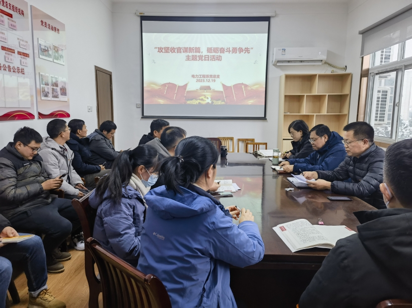 为深入开展第二批主题教育,落实“五型”美好校园建设,加强对入党积极分子的培养,12月19日下午,电力工程系党总支开展“攻坚收官谋新篇 砥砺奋斗勇争先”主题党日活动。活动以支部书记讲党课为主要内容,党总支书记主持,电力工程系全体党员及入党积极分子参加学习。