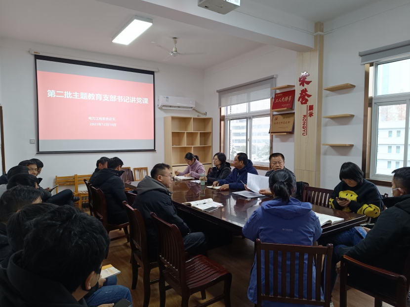 电工电子教研室党支部、发电输电教研室党支部、供电继保教研室党支部也分别召开支部大会,支部书记结合各支部的实际就第二批主题教育以来的所学、所思、所悟、所行四个方面分别讲授专题党课。