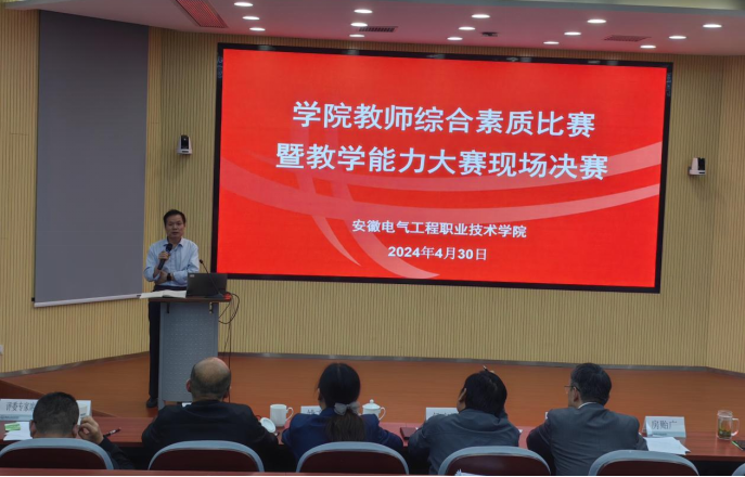 为提高学院教师教学能力,促进高水平、结构化教师教学团队建设,促进“能说会做善导”的“双师型”教师成长,全面提升教师的师德践行能力、专业教学能力、数字素养能力、综合育人能力和素质发展能力,选拔优秀教师参加教师教学能力省赛和国赛。4月30日下午,学院在100报告厅举办了2024年教师综合素质比赛暨教学能力大赛现场决赛。学院副院长房贻广应邀出席,综合管理部、教务处及各教学单位负责人及全体教师到场观摩比赛。