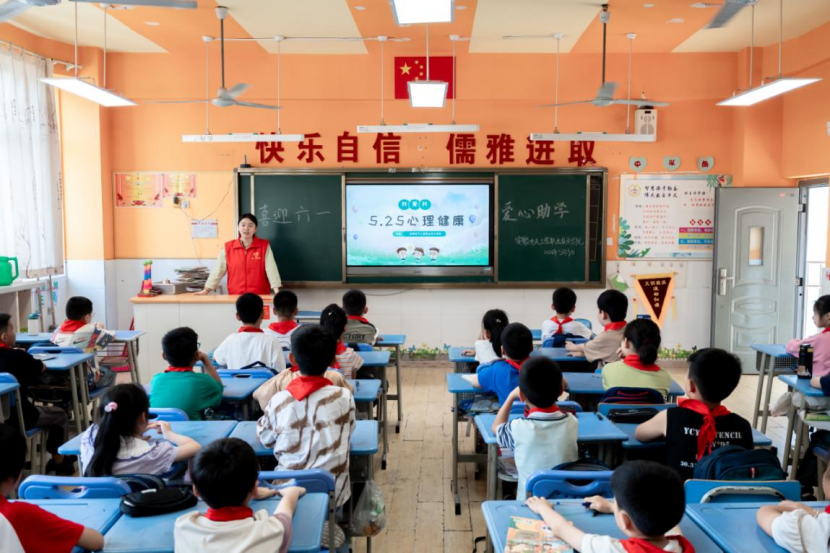 志愿者们向小学生们普及“525”心理健康活动日的背景、内涵和重要意义,以故事讲述和互动问答的形式,生动地向小学生们普及心理健康的基本知识,帮助他们认识到保持良好心理状态的重要性。通过现场模拟,引导小学生如何应对和防范校园霸凌行为,有效做好自我保护。
