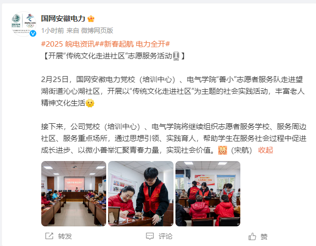 【安徽电力微博】开展“传统文化走进社区”志愿服务活动