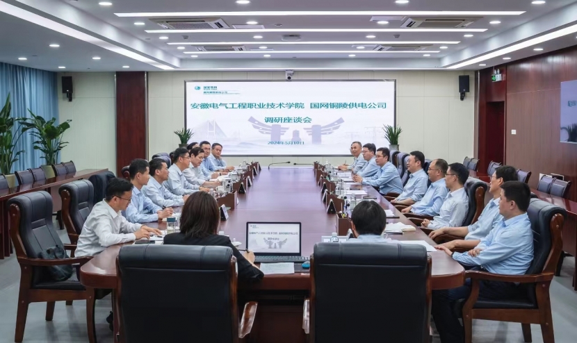 为深入贯彻落实教育部、安徽省教育厅关于高校毕业生就业工作决策部署,深入落实就业工作“一把手”工程,全面深化校企合作、供需对接,开拓更多就业创业岗位,促进毕业生高质量就业,学院院长刘斌于5月10日带队赴国网铜陵供电公司走访调研,双方就人才队伍建设、产学研合作、职工教育培训、学生实习实训、毕业生就业等工作进行深入的探讨和交流。铜陵公司总经理孙庆生、党委书记刘少华出席会议,学院副院长房贻广、二级职员吴汉江,铜陵公司副总经理施伟、桂亮、汪学兵、李梁,二级职员梁小华参加调研。