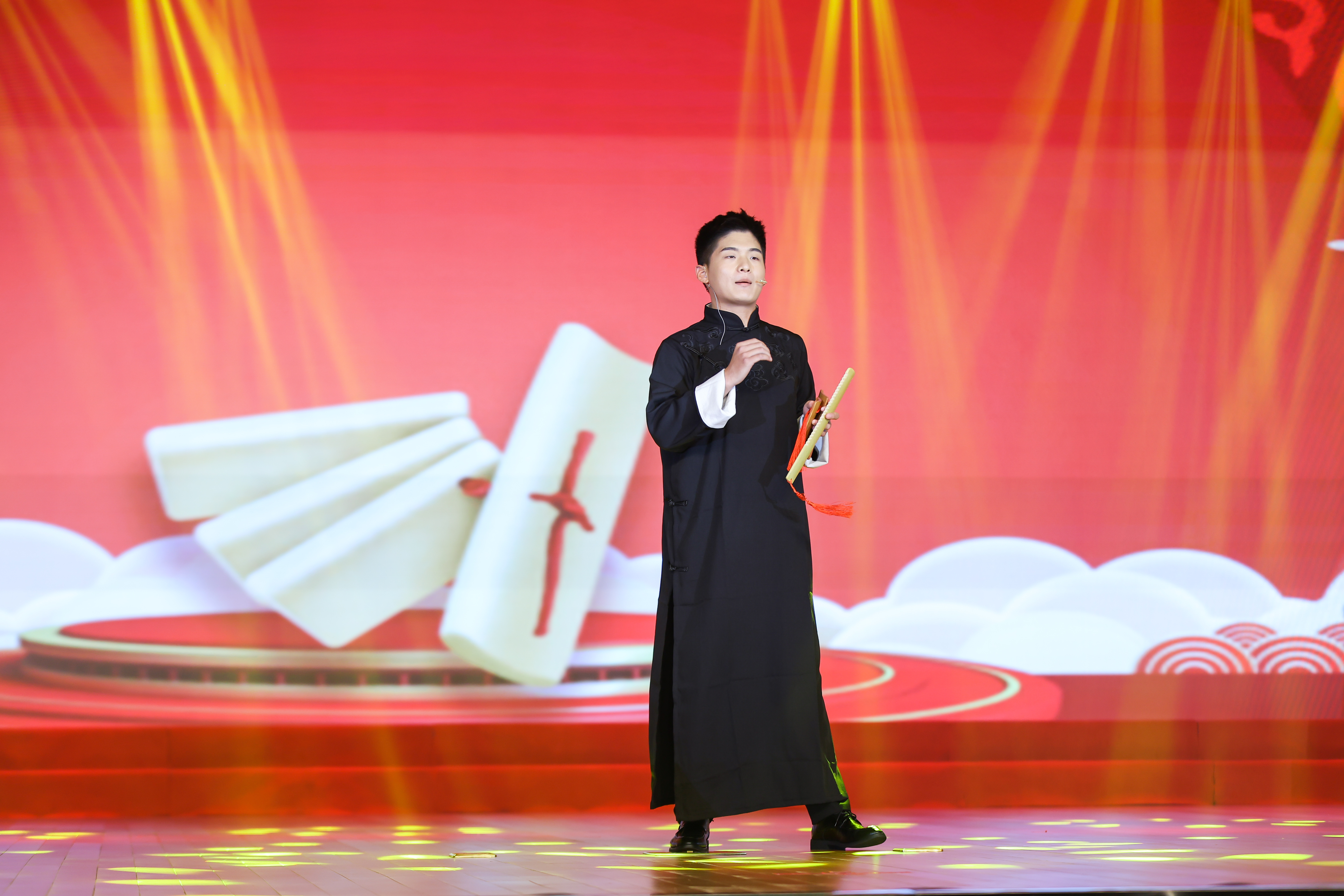 教师独唱《灯火里的中国》、校友演唱的原创歌曲《简单人生》、电力系学生原创歌曲《电力之光》等唱出了国家发展欣欣向荣、人民生活幸福甜美、新时代电力青年阳光向上的美好生活;快板《夸夸电院的好专业》则以俏皮的口吻讲述了电院人在“充电提能”中练就“真本领”的励志故事;退休教师们表演的旗袍秀《徽风皖韵》传递了银发芳华的魅力和对生活的热爱;军旅拳表演《橄榄绿的人生》展现了新时代军人的飒爽风姿;古筝书法《书香琴韵话中国》用浓浓的中国风表达了对中华民族优秀传统文化的传承和发扬;舞蹈《如愿》、朗诵《红色赞歌》热情讴歌了老一辈英烈们不怕牺牲、为国捐躯的爱国情怀,表达了对祖国繁荣昌盛的热切期盼。