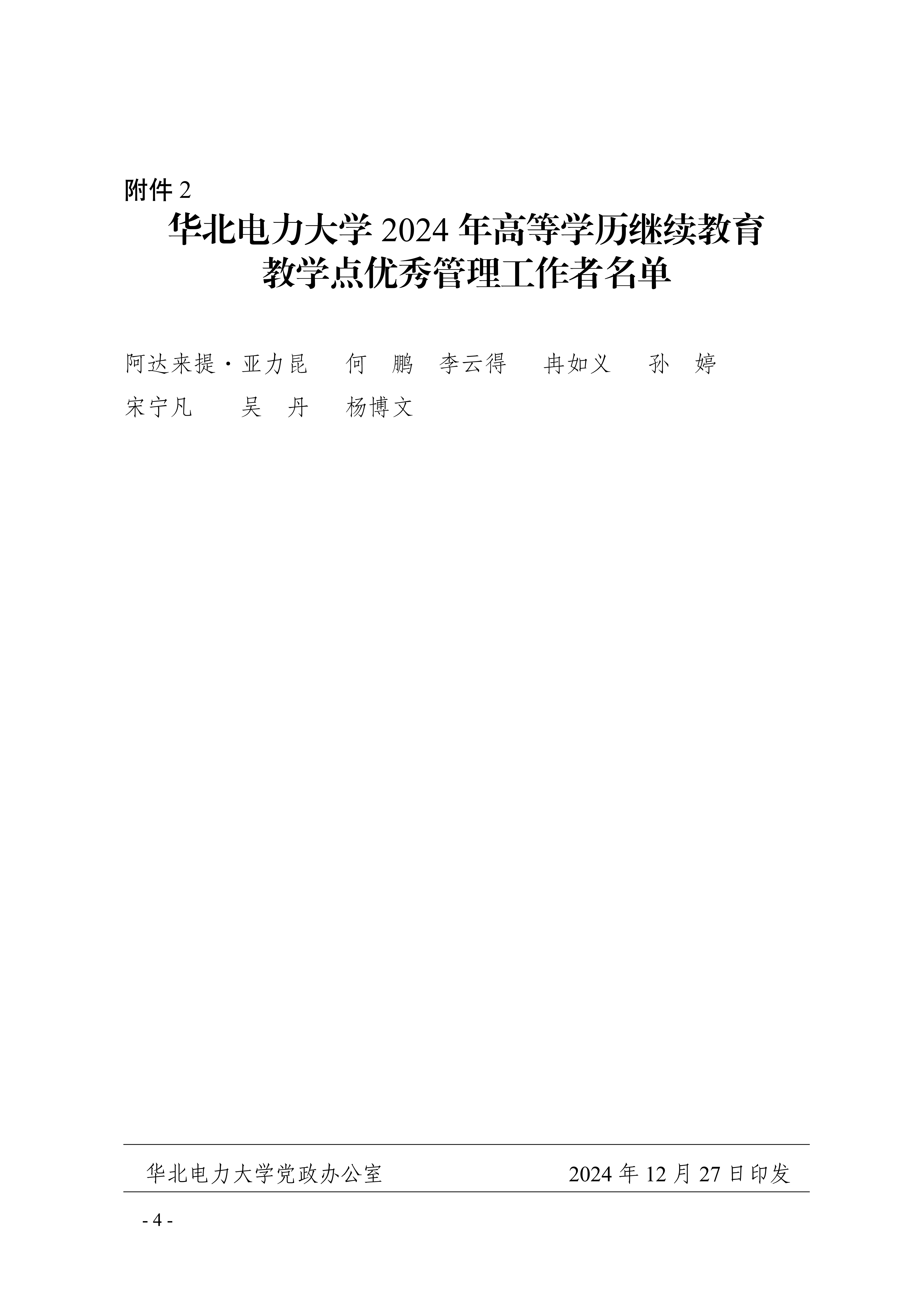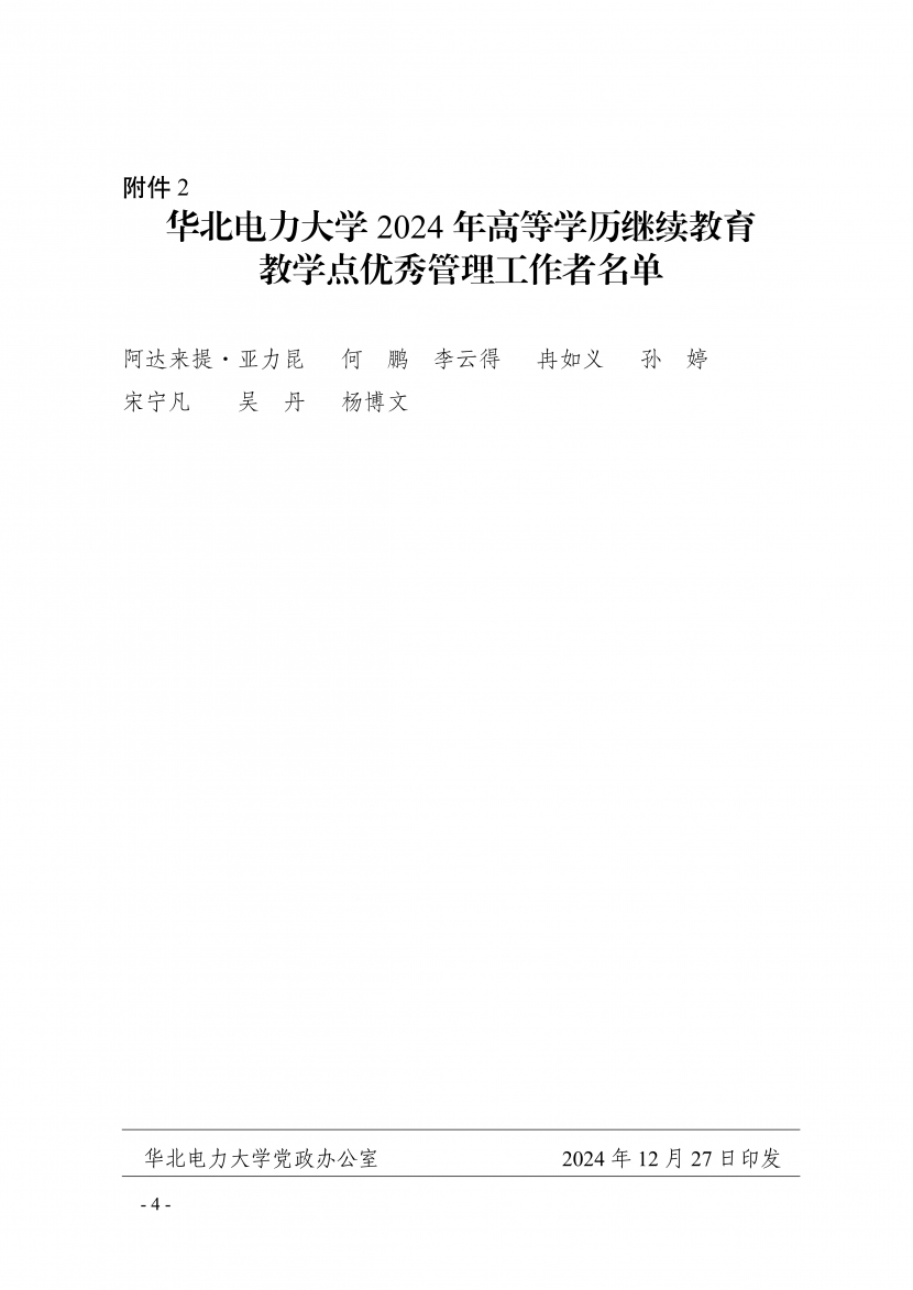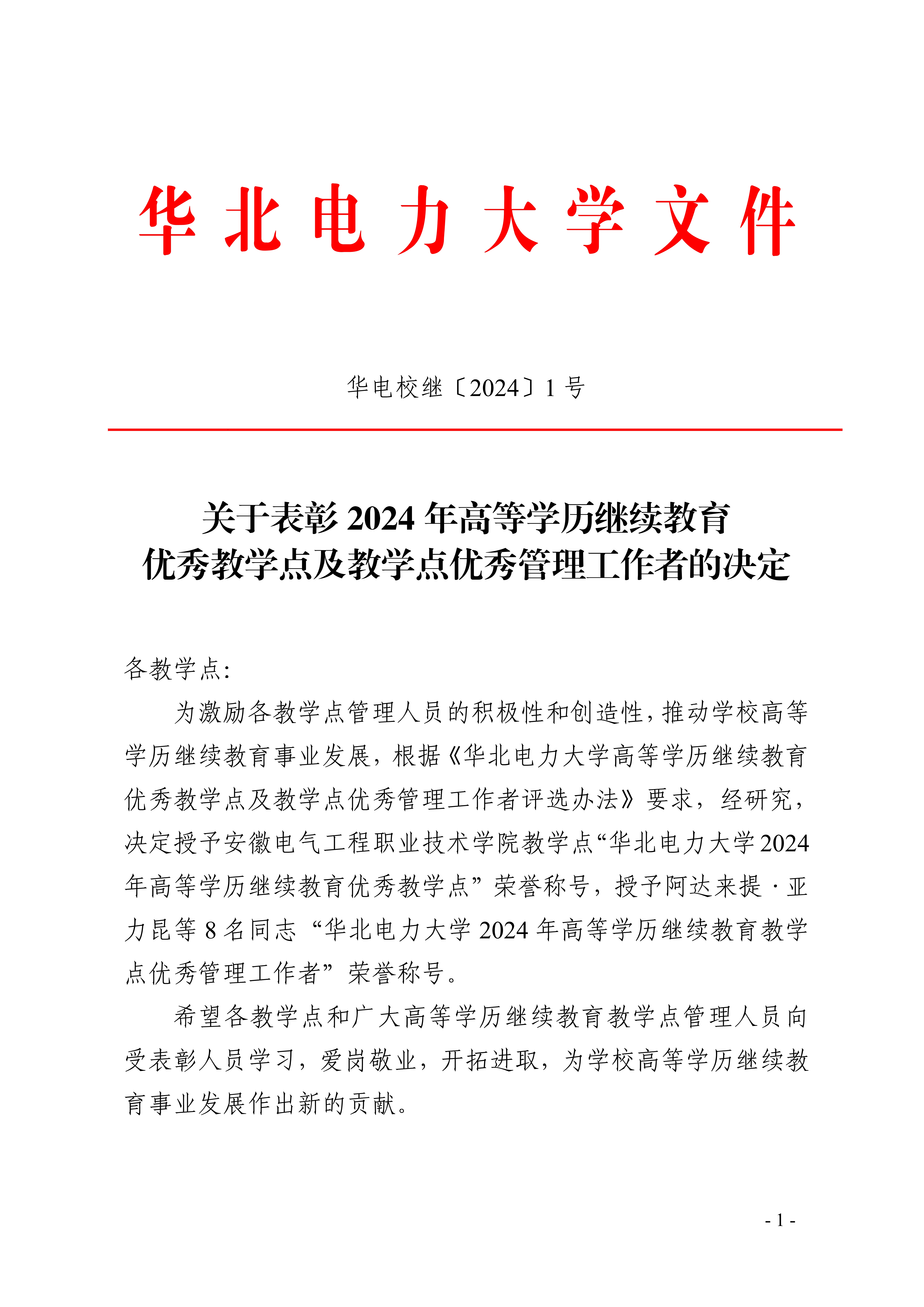 近日,华北电力大学公布了2024年高等学历继续教育“优秀教学点”和“优秀管理工作者”的评选结果。我校被授予“优秀教学点”荣誉称号,何鹏同志被授予“优秀管理工作者”荣誉称号。