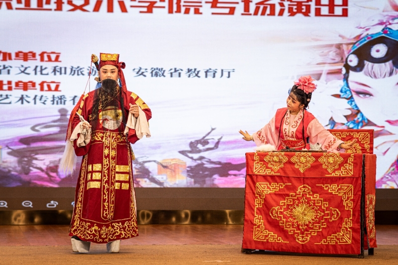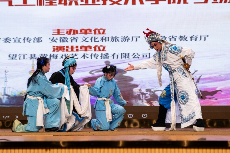 本次活动由学院团委精心统筹、周密部署。学院特邀安徽省黄梅戏剧院的名家名角走进校园,将国家级非物质文化遗产——黄梅戏的独特魅力带到了师生身边。舞台上,艺术家们唱念做打,尽显功底;舞台下,300余名师生凝神欣赏,掌声雷动。这场别开生面的戏曲盛宴,不仅是一次视听享受,更是一堂生动的传统文化美育课。