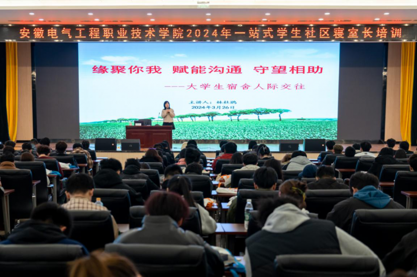 为进一步织密我院“一站式”学生社区基层学生干部队伍网络,提升寝室长队伍的整体素质,提高寝室长责任意识,强化寝室长自我教育、自我管理、自我监督、自我服务能力,3月26日下午,学院在包河大道校区礼堂开展2024年寝室长培训。
