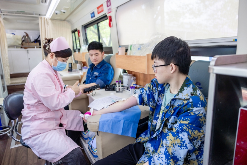 活动现场,血站医务人员为大家讲解献血注意事项,志愿者积极引导参与献血的学生有序填表、测体重、量血压、初筛、献血……