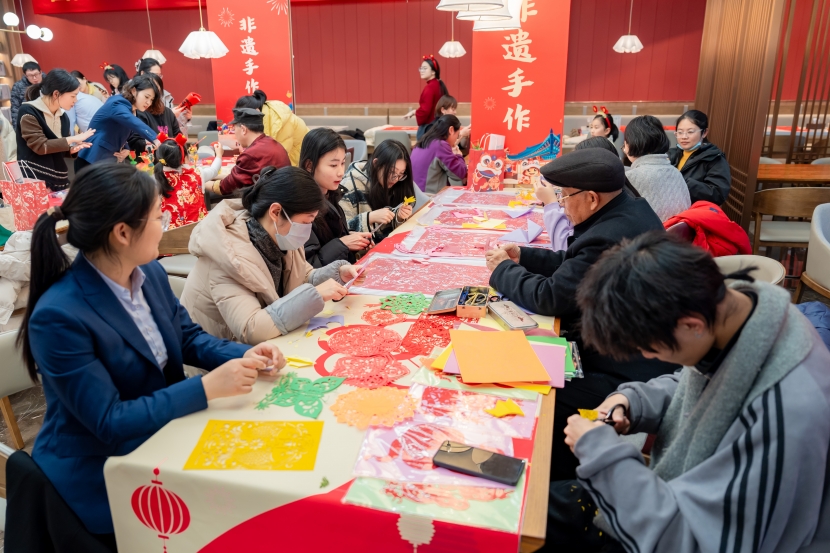 游园会的亮点是剪纸和面塑非遗技艺展示,精美的作品和传承人精湛的技艺吸引了不少人驻足欣赏,制作体验更是让参与者足足过了把瘾。“咬春纳福”和“益智迎春”活动区有着别样的精彩,美味的手工水饺和精制的传统小食,让大家既可以一同品味幸福、畅谈未来,也可以切磋牌技益智迎春。