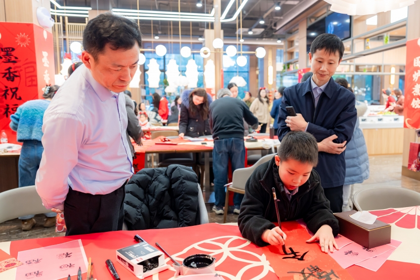 游园会有“墨香祝福”、“非遗手工”、“咬春纳福”和“益智迎春”四个活动区域,将中华传统年节文化与企业文化融合,集书法、非遗、美食和益智活动于一体,不仅延续了一年一度的写春联送祝福的文化传统,还新增了颇有体验感的一起画“福”,将绘制趣“福”与书法文化传承完美结合。