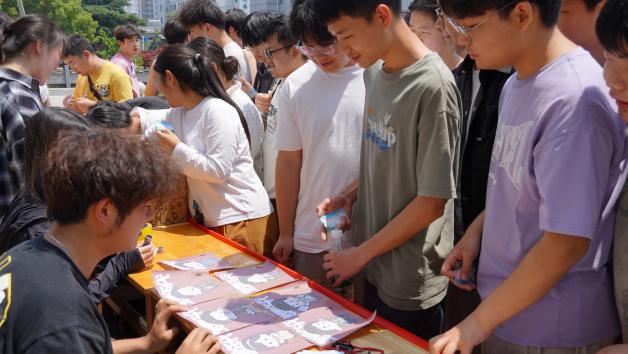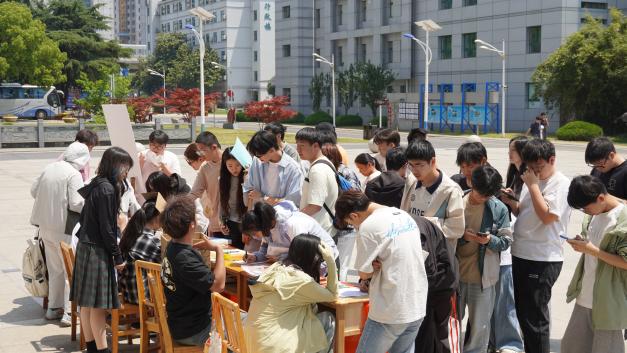 4月29日,教学楼广场的主题互动活动亮点纷呈。“青春心愿交换匣”中,学生匿名投放烦恼、抽取鼓励便签,工作人员引导现场分享情绪共鸣,构建同学们之间的温暖联结;定制背景板前,学生们用镜头定格青春姿态,打卡留念;“五四英雄猜猜乐”通过卡通纸板竞猜,让革命先烈的故事深入人心,引发了同学们的共鸣,现场气氛活跃。