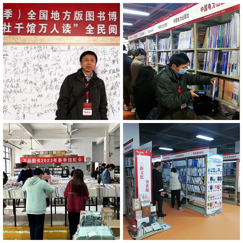 3月17日,教务处(图书馆)图书综合专责朱靖老师、流通馆员吕小武老师、电力系教研室主任蒋多晖老师、动力系教研室主任余长军老师参加在合肥举办的万品图书2023年春季馆配会,现场选取专业图书178种。3月22日至24日,图书综合专责朱靖老师赴湖北武汉参加第十九届(春季)全国地方版图书博览会,现场选取图书240种,第一时间将中国电力出版社书目反馈到教师读者服务群中,教师读者根据书单选取图书78种。3月22日以来,馆员和骨干教师参加由安徽省委宣传部指导,安徽新华发行集团、黄山市人民政府举办的“安徽2023图书馆春季馆配会”云馆配线上选书。