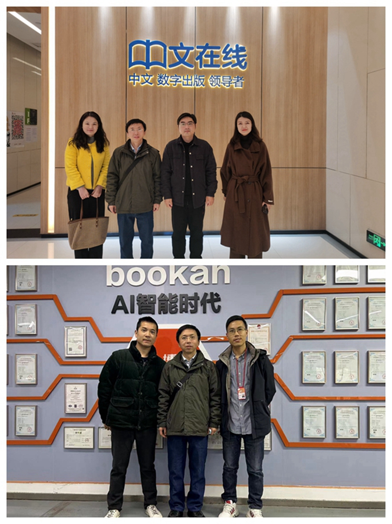 在武汉期间,朱靖老师与湖北中文在线数字出版有限公司、武汉鼎森电子科技有限公司(博看网)商谈安徽省高校数字图书馆联采数字文献资源共享事宜,为学院图书馆争取更多共享数字文献资源。