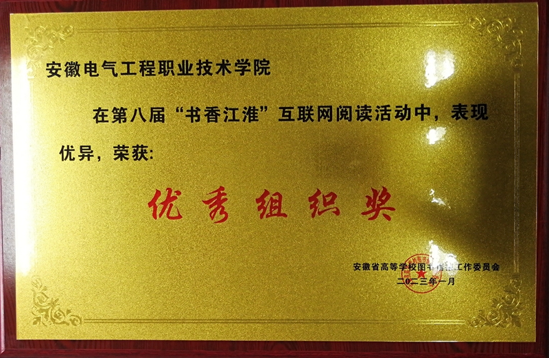 2022年,我院指导教师朱靖、许如玉以学生社团读书协会为抓手,组织学生参加征文活动,共上传主题征文392篇,位居全省高校前列。经评审,我院21电气秋季一班张文静同学荣获征文活动二等奖,21电气三班孟雨同学、22发电二班丁佳骏同学分获三等奖,我院获“优秀组织奖”荣誉称号。自2015年以来,我院连续8年荣获首届、第二届、第三届、第四届、第五届、第六届、第七届、第八届“书香江淮”互联网阅读活动最佳团体奖、最佳组织奖、优秀组织奖、最佳组织单位、优秀指导单位,我院师生读书征文连续8年荣获一、二、三等奖。全省高校当中,唯有我院蝉联这一殊荣。