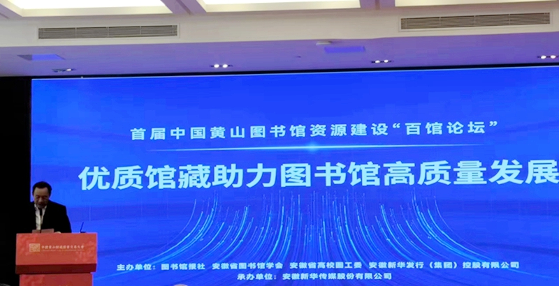 3月22日下午,首届中国黄山图书馆资源建设“百馆论坛”在黄山香茗大酒店召开。本次论坛由图书馆报社、安徽省图书馆学会、安徽省高等学校图书情报工作委员会、安徽新华发行(集团)控股有限公司主办,安徽新华传媒股份有限公司承办。来自全国各级各类公共图书馆、高校图书馆相关负责人和业务骨干共100余人参加了论坛活动,从图书馆视角和需求出发进行分享交流,推动全国图书馆文献资源建设领域内的学术交流和资源共建共享方面的新合作。