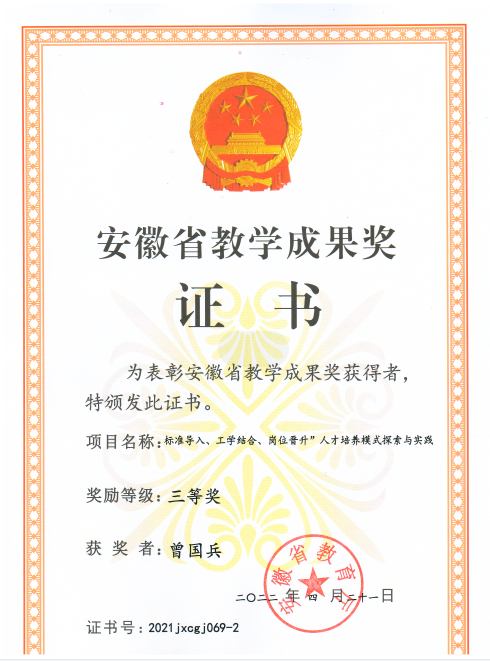 抓创新、谋突破。面对新时期国家对职业教育的新理念和新要求,系部组织专业教学团队积极开展“岗课赛证”融合教学研讨,以1+X制度试点工作为抓手,探索构建“课证”融通综合育人模式,以职业岗位为主导、紧贴岗位需求重构课程体系,做到岗课对接、以岗定课,课证融合、以证定标,课赛融通、以赛提技。通过“岗课赛证”融通,夯实专业技能基础,加强学生操作技能的培养和职业证书的考取,专业学生在2022年垃圾焚烧发电运行与维护职业技能等级证书认证考核中,通过率达100%,与2021年相比,提升了66.4%。“标准导入、工学结合、能力递升”人才培养模式探索与实践教学成果荣获安徽省教学成果三等奖。