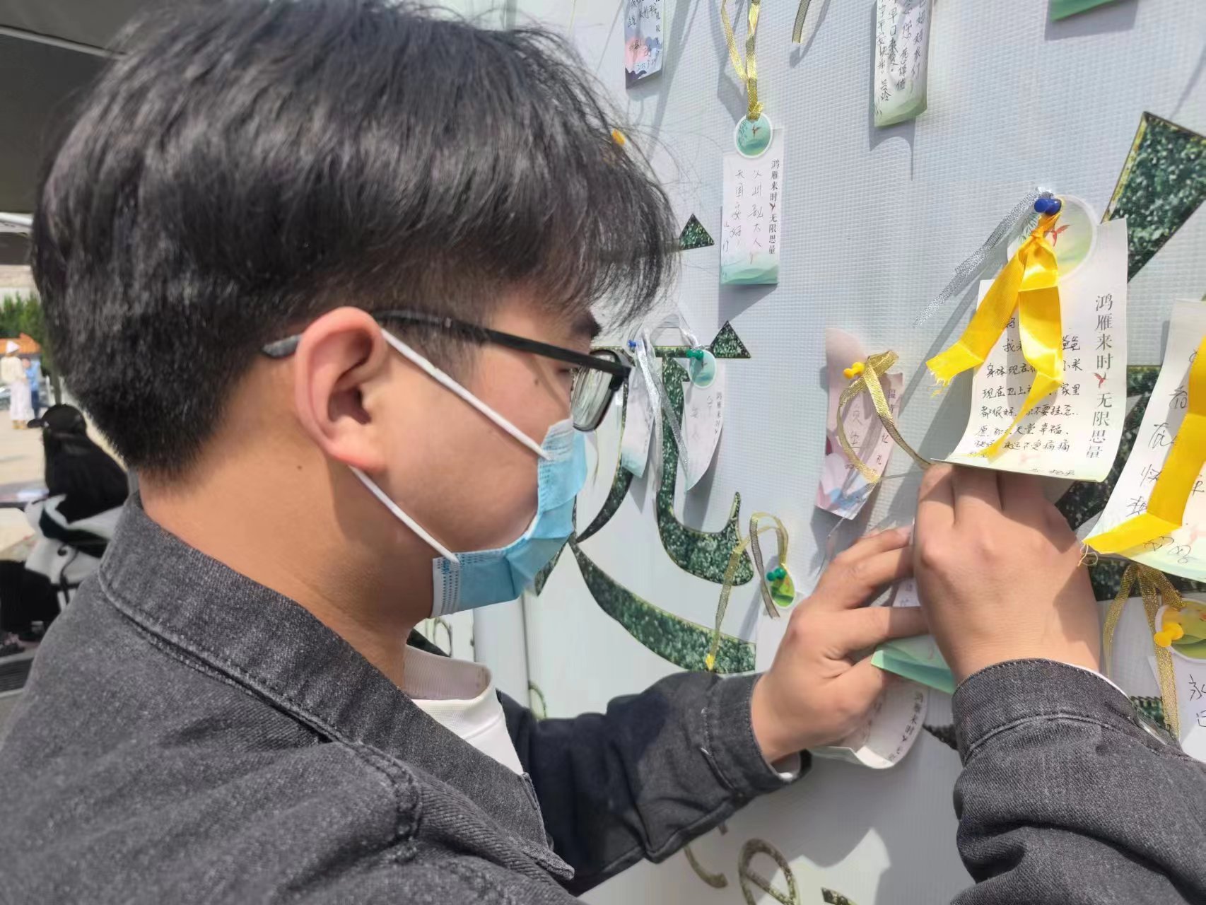 同学们来到大蜀山革命公墓纪念碑前,举行了敬献花篮的仪式。纪念碑前,一片庄严肃穆。大家在这里缅怀先烈,寄托哀思。22级退役复学学生刁鑫才向大家介绍了部分烈士的生平事迹,以及纪念碑的造型含义,让大家经历了一次心灵的洗礼。仪式之后,同学们手写缅怀贺卡,悼念逝去的先烈们。